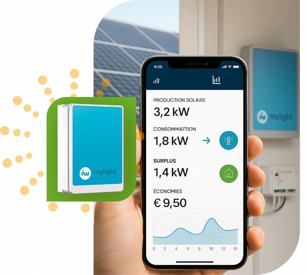 Avec MyLight, profitez d’une gestion intelligente et flexible de votre production énergétique, tout en réduisant votre empreinte écologique et en augmentant votre indépendance énergétique. Cette approche moderne rend l’énergie solaire plus accessible, pratique et durable que jamais.